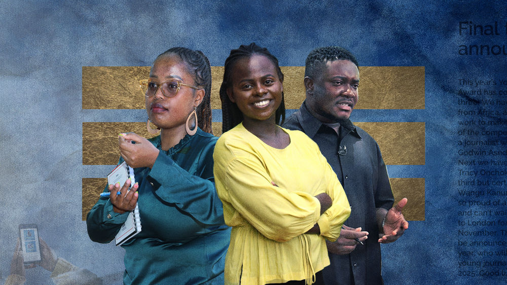 Godwin Asediba who is an investigative journalist, producer and news anchor with TV3 and 3FM in Ghana, has received death threats for his work exposing injustice, corruption and criminality. His inspiration he says, comes from the ‘courage and strength’ of the people whose stories he tells. Godwin is one of three finalists in our competition to find the Young Journalist of the Year 2025.