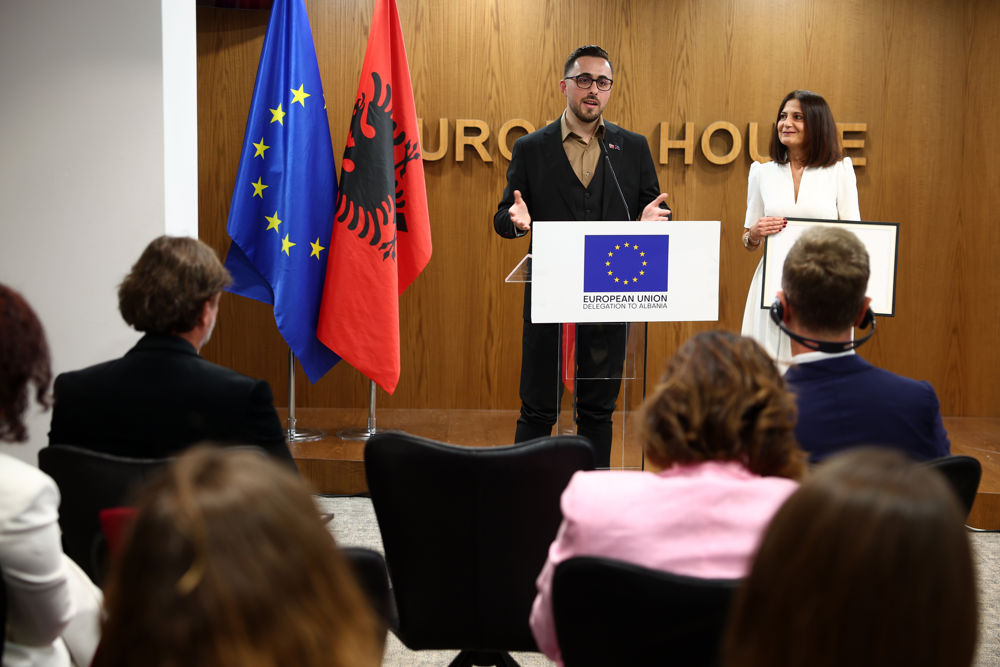 Geri Emiri and Erjola Azizolli, winners of the first prize in Albania