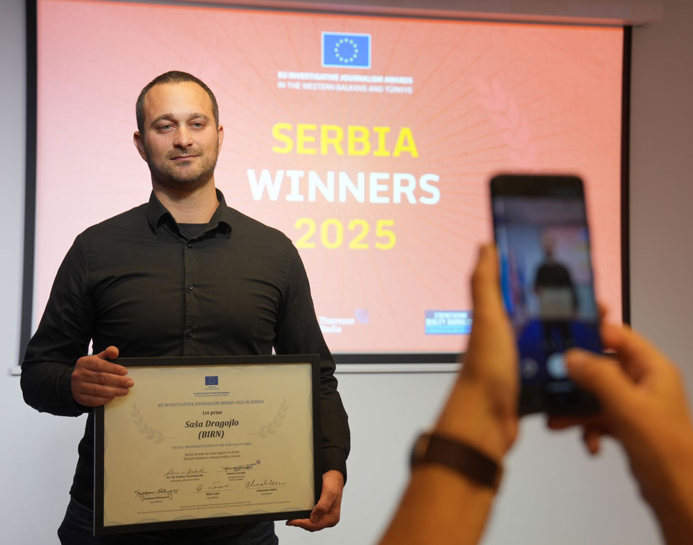 In Serbia, the first prize was divided between two stories showcasing the corruption at the highest institutional levels. Aleksa Tešić’s story about the hacks on activists’ phones documented how the Security Information Agency used forensic technology to unlawfully access activists’ devices, revealing a chilling abuse of surveillance powers.